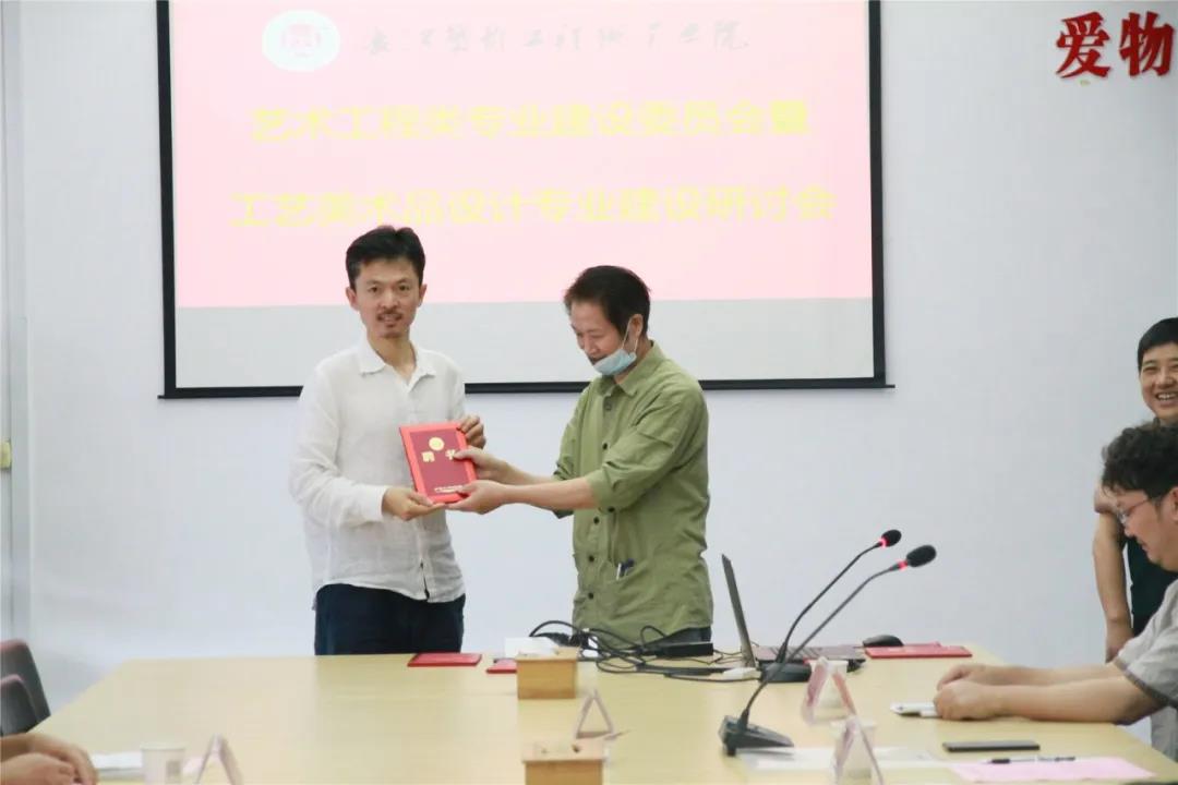 工艺美术品设计专业负责人孟祥高介绍了工艺美术品设计专业基本情况、人才培养方案、课程设置以及师资、基地建设等情况。